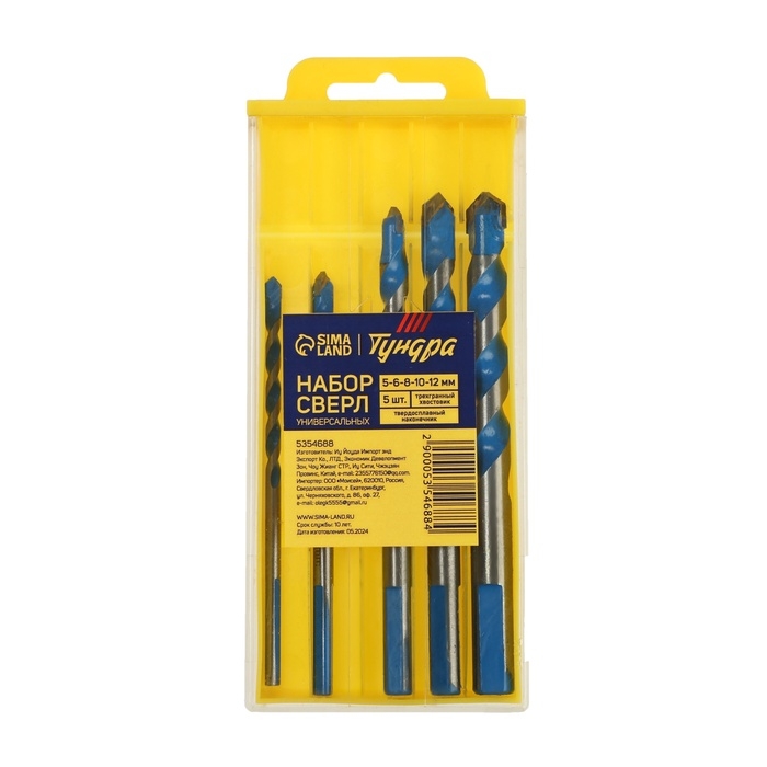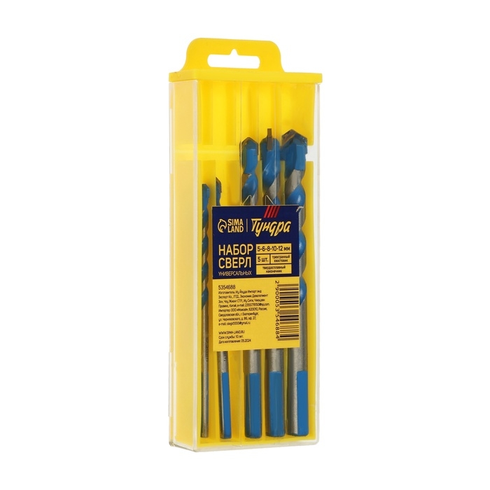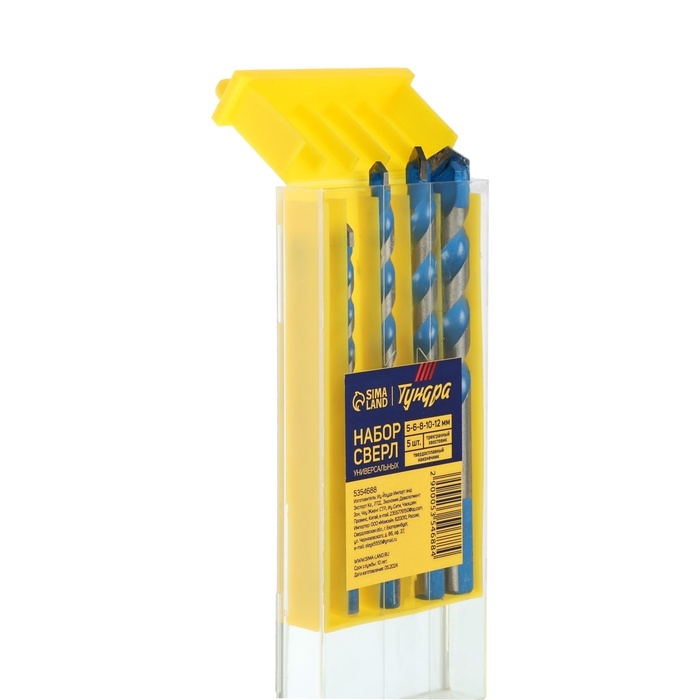 Набор универсальных сверл ТУНДРА, твердосплавный наконечник, 5-6-8-10-12 мм, 5 шт.