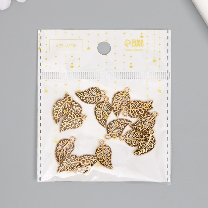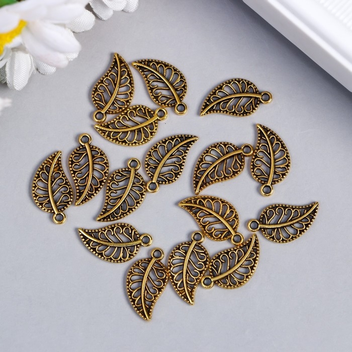 Декор металл для творчества "Золотой ажурный листик" набор 16 шт 1,8х1 см
