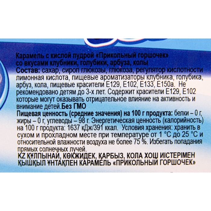 Карамель «Прикольный горшочек» – это яркое и увлекательное угощение, которое понравится любителям кисло-сладких вкусов. В каждом маленьком пластиковом горшочке находится карамель, которую можно обмакнуть в прилагаемую кислую пудру для усиления вкусовых ощущений. Ассортимент вкусов включает в себя разнообразие ягод и фруктов: сочную клубнику, освежающую голубику, сладкий арбуз и даже классический вкус колы. Карамель отличается насыщенным вкусом, который отлично сочетается с контрастной кислинкой пудры, создавая оригинальные вкусовые комбинации.