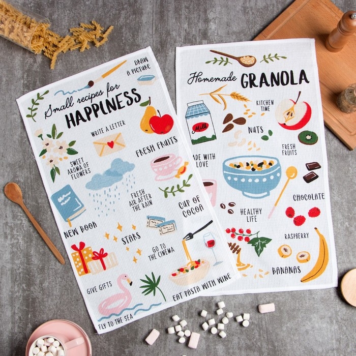 Набор кухонных полотенец Доляна «Рецепты счастья», 35х60 см-2шт, 100% хлопок