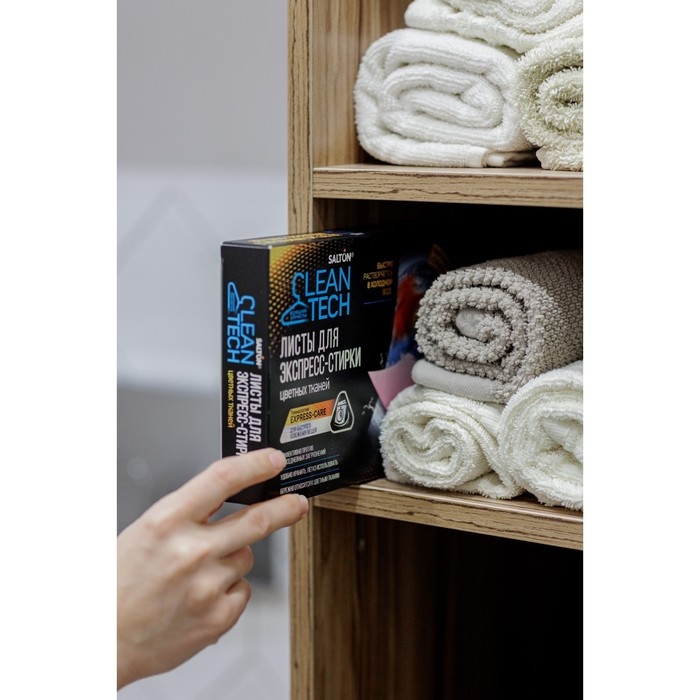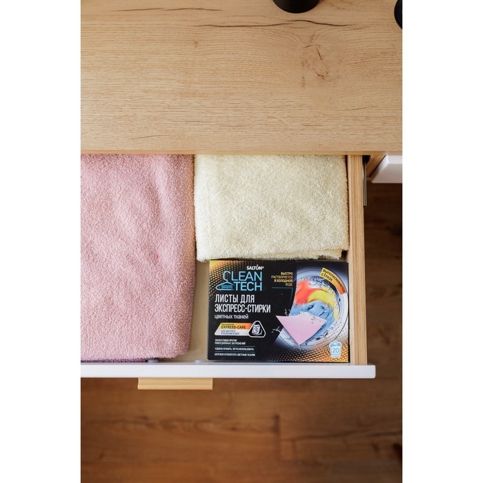 Листы для экспресс-стирки цветных тканей Salton CleanTech созданы специально для быстрых и коротких режимов стирки при низких температурах, которые используют для регулярного очищения и освежения одежды. Разработаны специально для цветных и ярких вещей.
