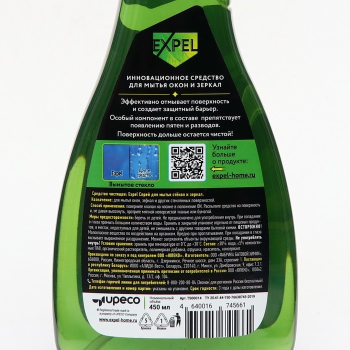 Средство для мытья стекол и зеркал Expel, мята, антидождь, 450 мл