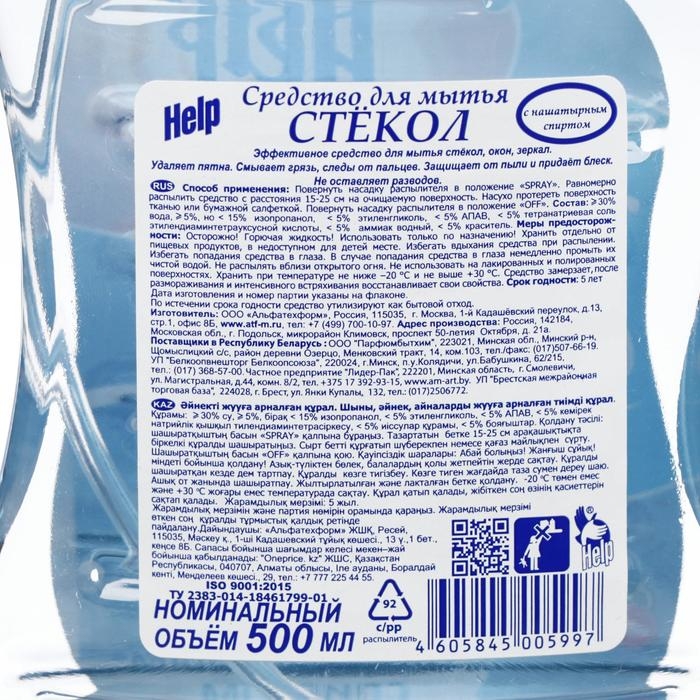Средство для мытья стёкол Help, с нашатырным спиртом, 500 мл