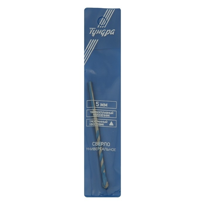 Сверло универсальное ТУНДРА, твердосплавный наконечник, трехгранный хвостовик, 5 х 100 мм