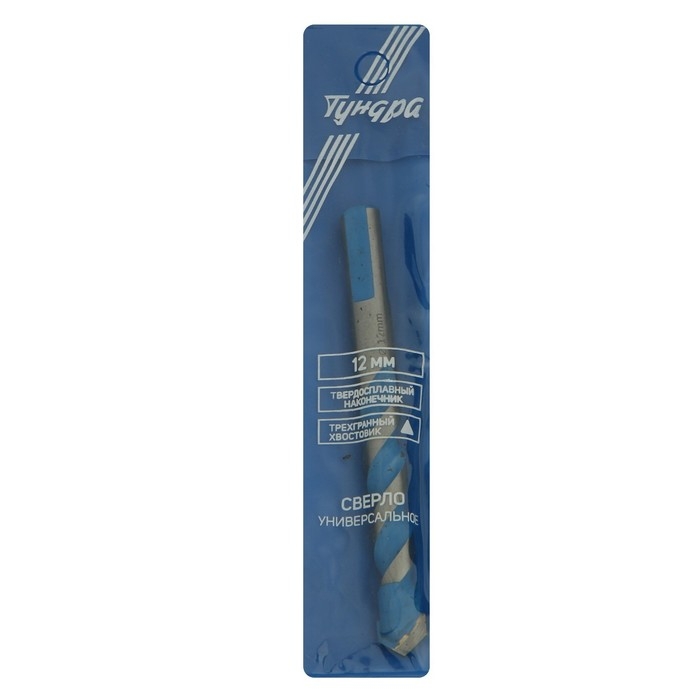 Сверло универсальное ТУНДРА, твердосплавный наконечник, трехгранный хвостовик, 12 х 115 мм
