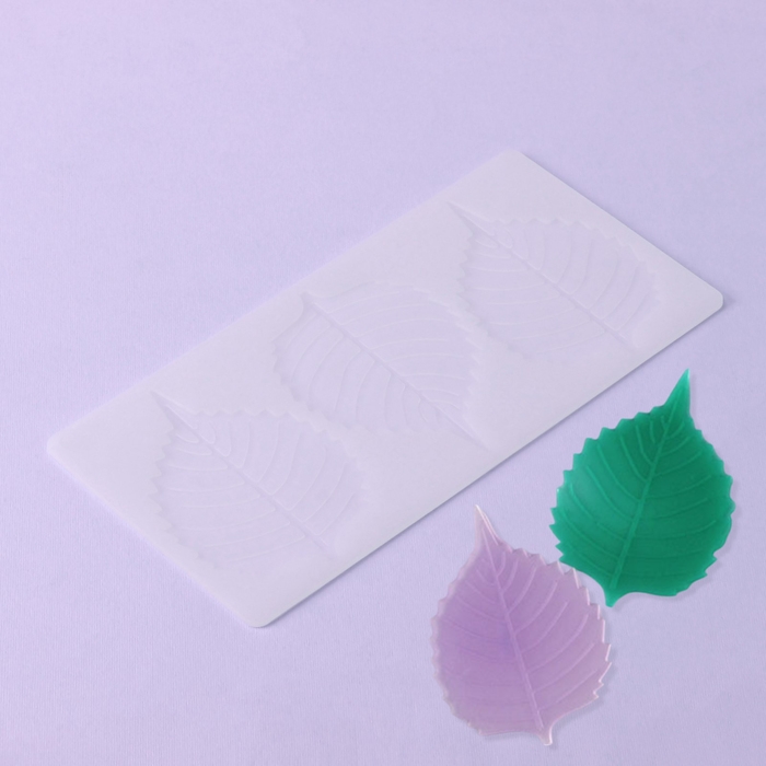 Форма для шоколада «Тополиный лист», силикон, 3 ячейки, 23×11×0,3 см, цвет белый