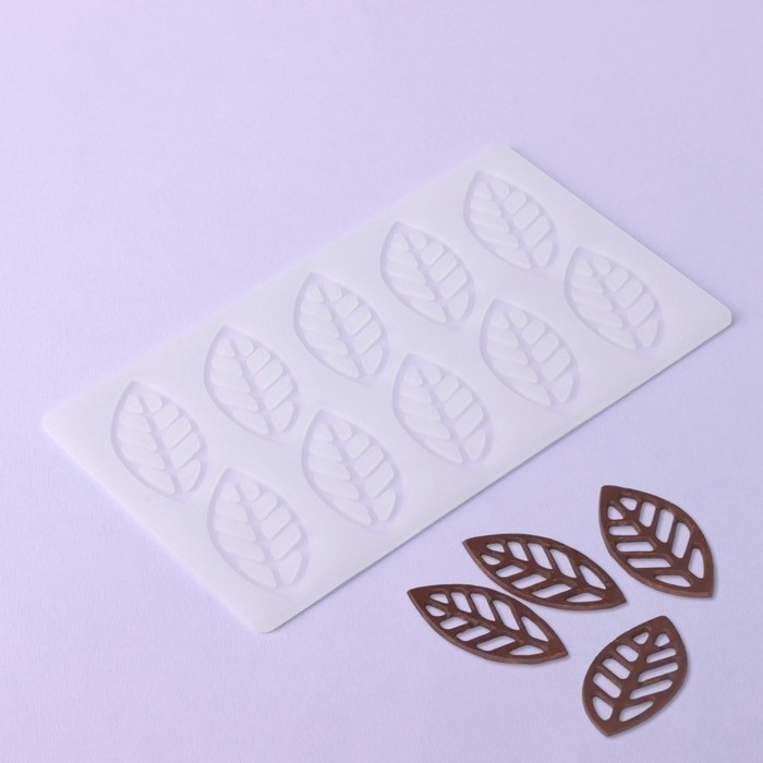Форма для шоколада «Листья вишни», силикон, 10 ячеек, 23×13×0,3 см, цвет прозрачный