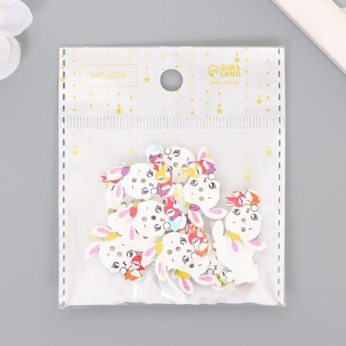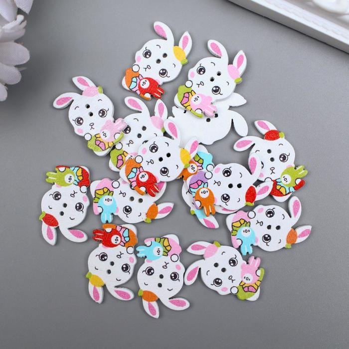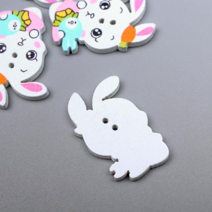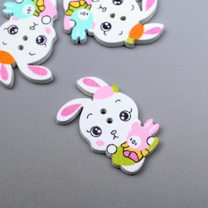 Пуговицы дерево для творчества 2 прокола "Зая с зайкой" набор 15 шт МИКС 2,4х1,5 см