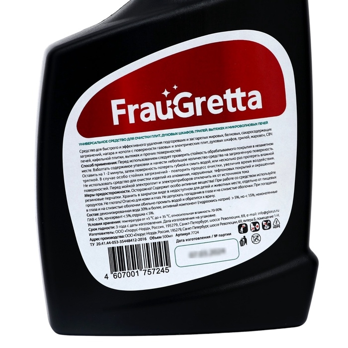 Средство для быстрого и эффективного удаления подгоревших и застарелых жировых, белковых, сахаросодержащих загрязнений, нагара и копоти.