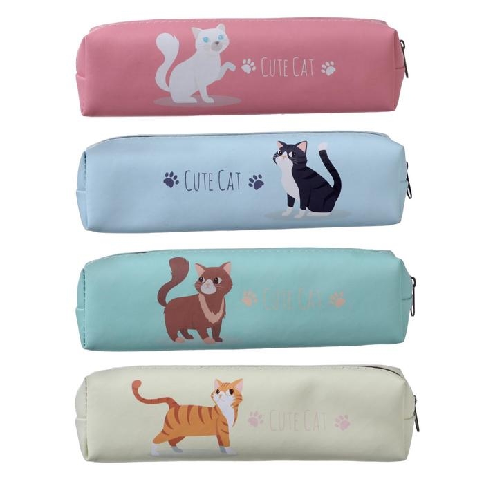 Пенал школьный на молнии "Кот", МИКС