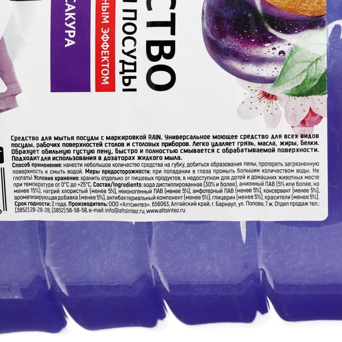 Средство для мытья посуды Rain "Слива-Сакура", 5 л