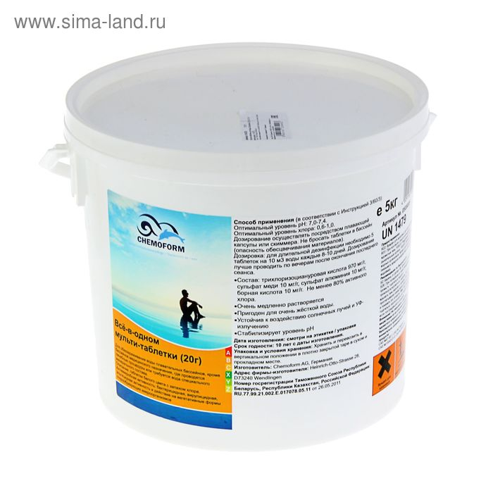 Дезинфицирующее средство Chemoform "Все в одном", для воды бассейне, мульти-таблетки, 20 г, 5 кг