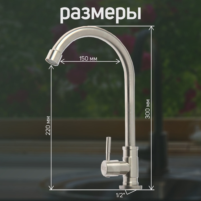Моносмеситель ZEIN Z03, нержавеющая сталь, поворотный излив, сатин