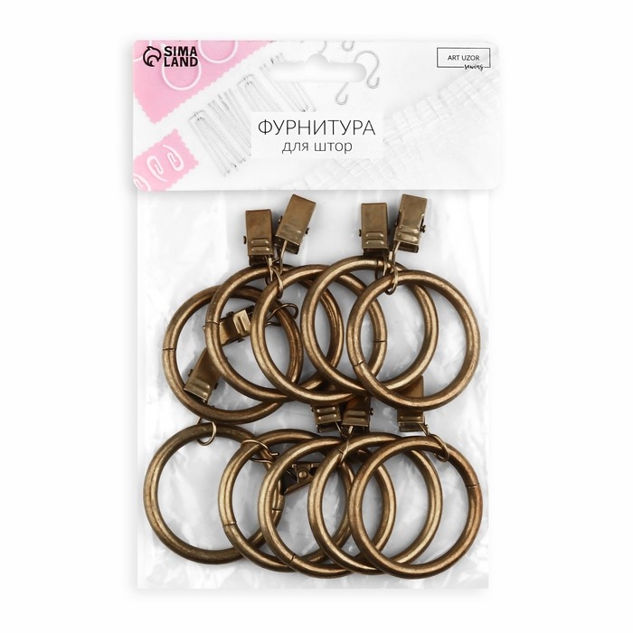 Кольцо для карниза, с зажимом, d = 38/48 мм, 10 шт, цвет антик