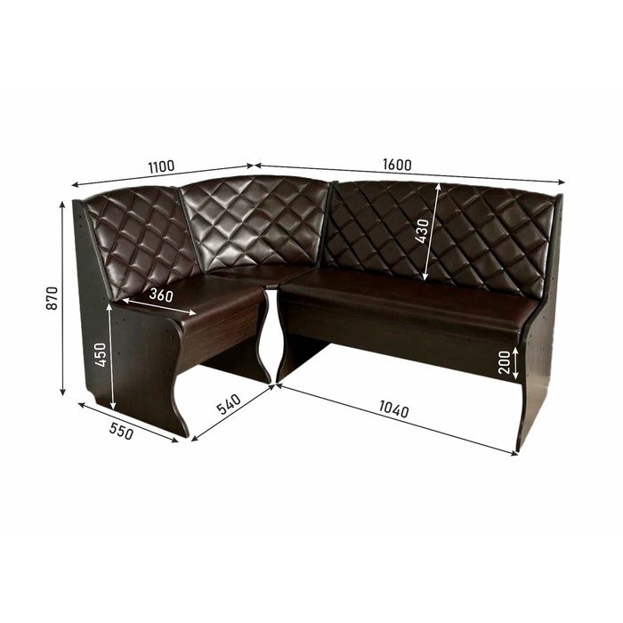 Кухонный уголок Барон-2, 1600х1100х870, стандарт ЛДСП Венге/Коричневый кожзам