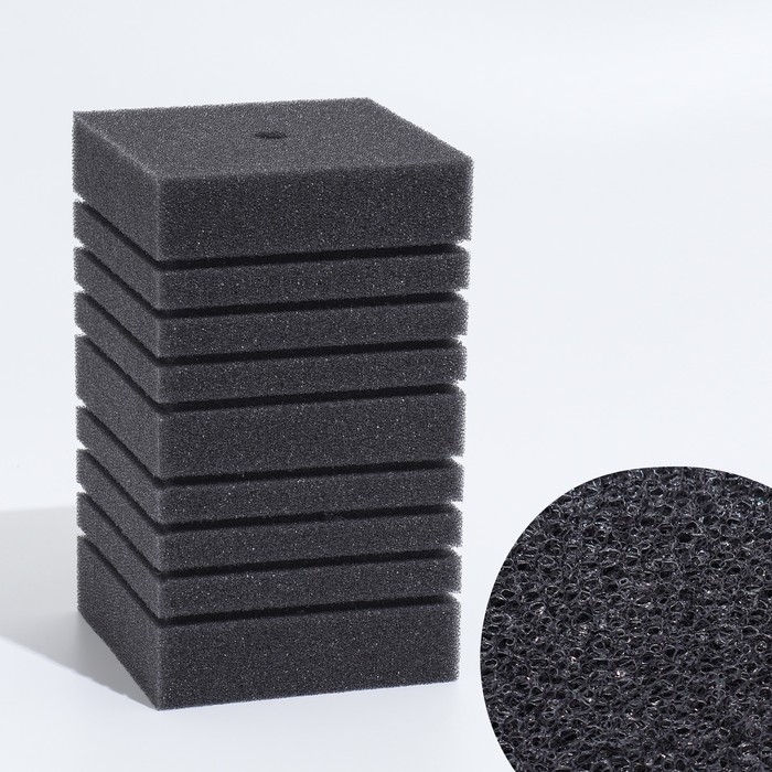 Губка прямоугольная для фильтра № 8, ретикулированная 30 PPI, 8 х 8 х 12 см, черная