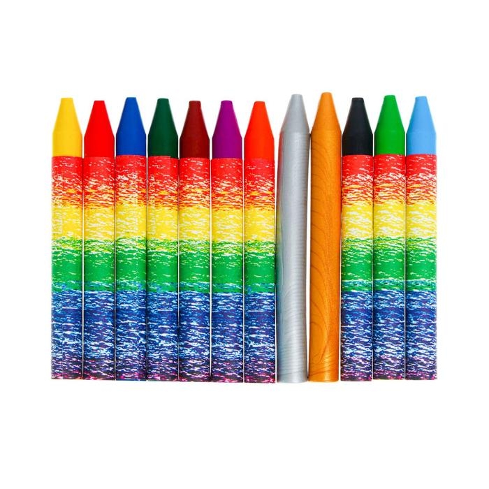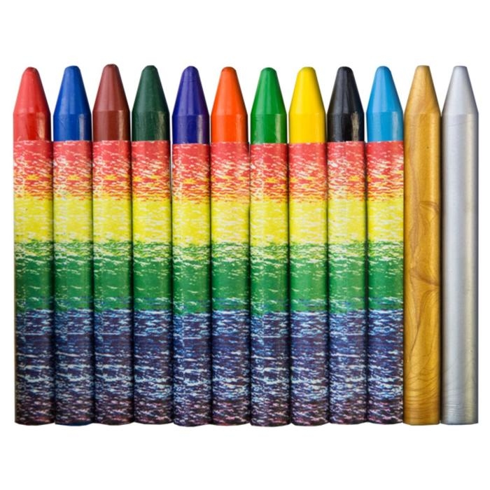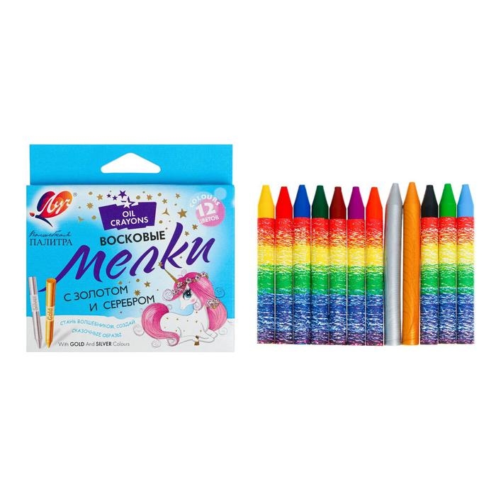Мелки восковые 12 цветов (10 классических + 1 золотой + 1 серебряный) "Волшебная палитра", круглые