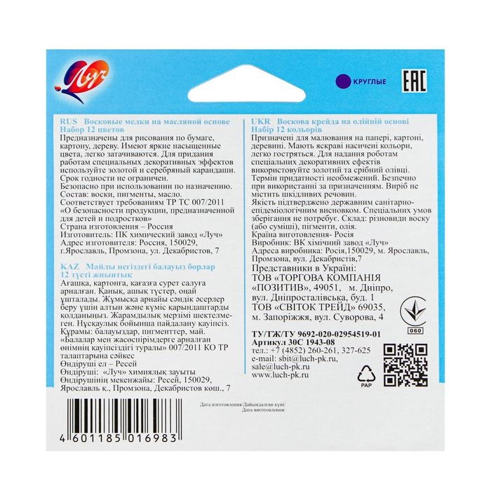 Мелки изготавливаются на основе восков и высококачественных пигментов. Предназначены для рисования и письма по разным поверхностям: бумаге, картону, дереву, ткани, стеклу, камням. В наборе два мелка золотого и серебряного цвета. Прочные,экономичные, не требуют затачивания, но при необходимости можно использовать обычную точилку. Каждый мелок завернут в бумажную этикетку. Это снижает скольжение, улучшает прочность мелка, предохраняет от загрязнений всего вокруг. Не пачкают руки. Прекрасно рисуют в различных техниках в сочетании с акварелью, гуашью и т. д.