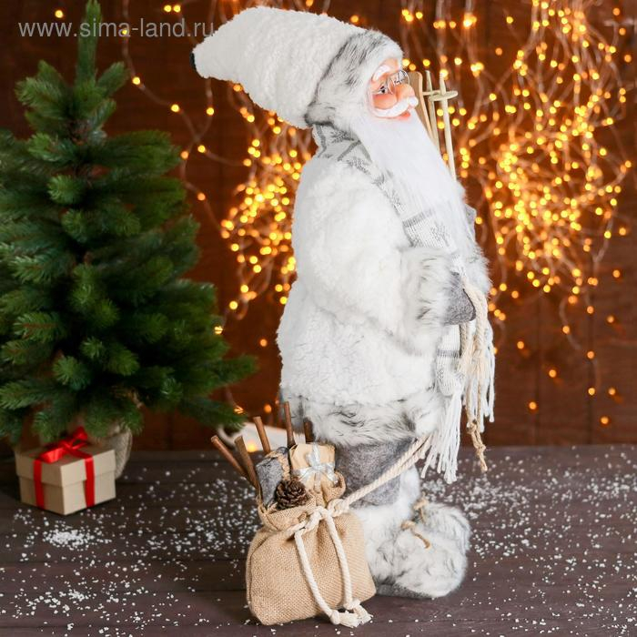 Дед Мороз "В белой шубке с лыжами" 60 см