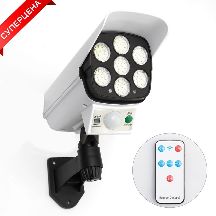 Фонарь-муляж камеры видеонаблюдения аккумуляторный, 4 режима, солнечная батарея, 7.5 х 8 см