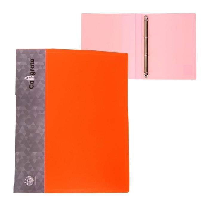 Папка на 4 кольцах А4, Calligrata, 25 мм, 700 мкм, внутренний и торцевой карман, оранжевый неон