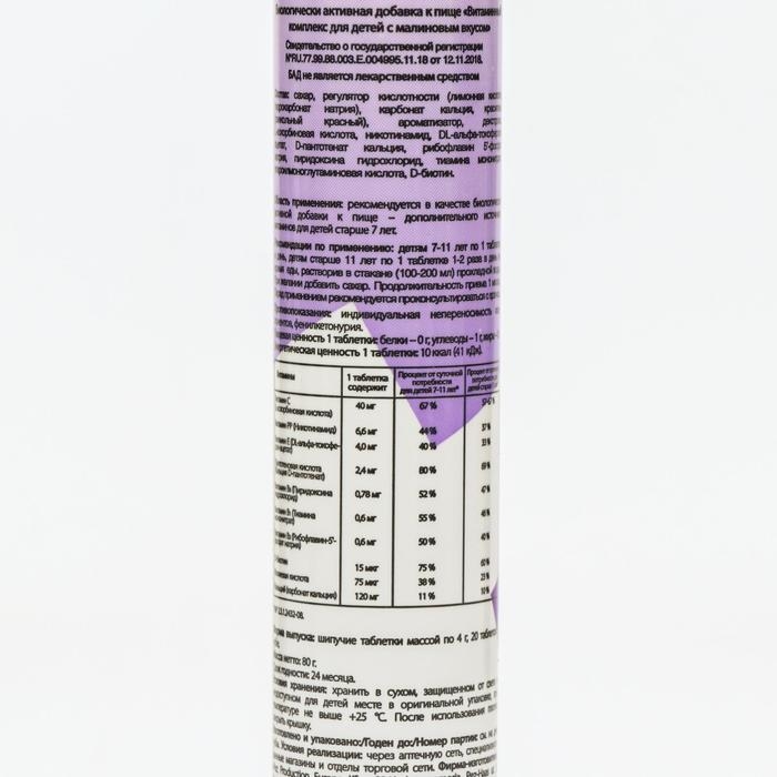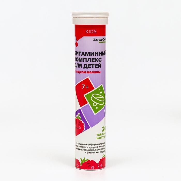 Витаминный комплекс Здравсити для детей с малиновым вкусом, 20 шипучих таблеток по 4 г