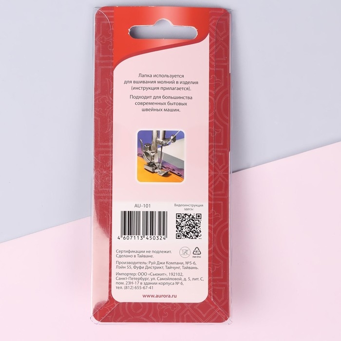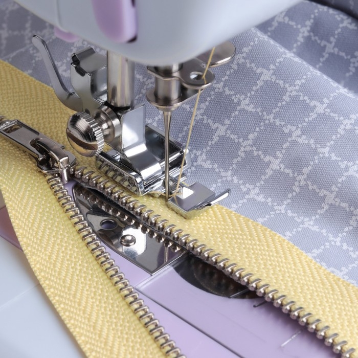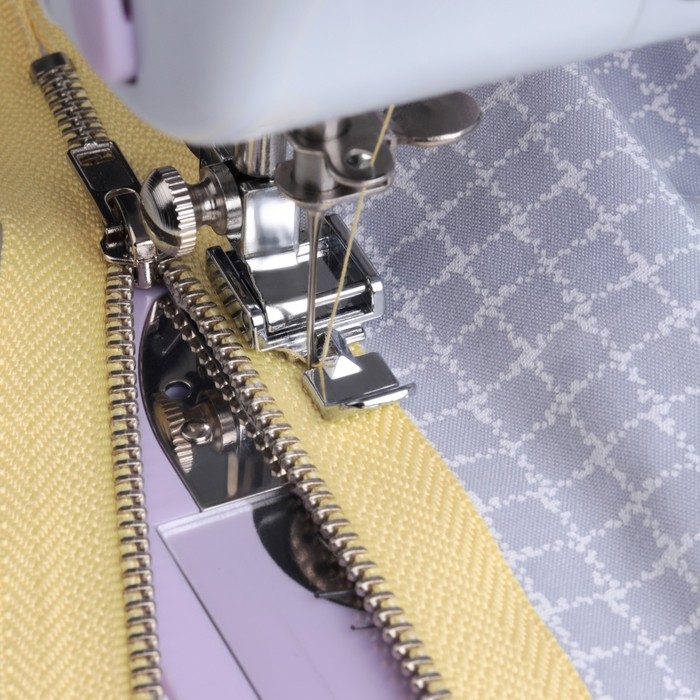 Лапка предназначена для вшивания молнии в изделие. Лапка может располагаться как слева, так и справа от иглы. Благодаря боковым направляющим на лапке молния идёт ровно, что позволяет легко и быстро её пришить.