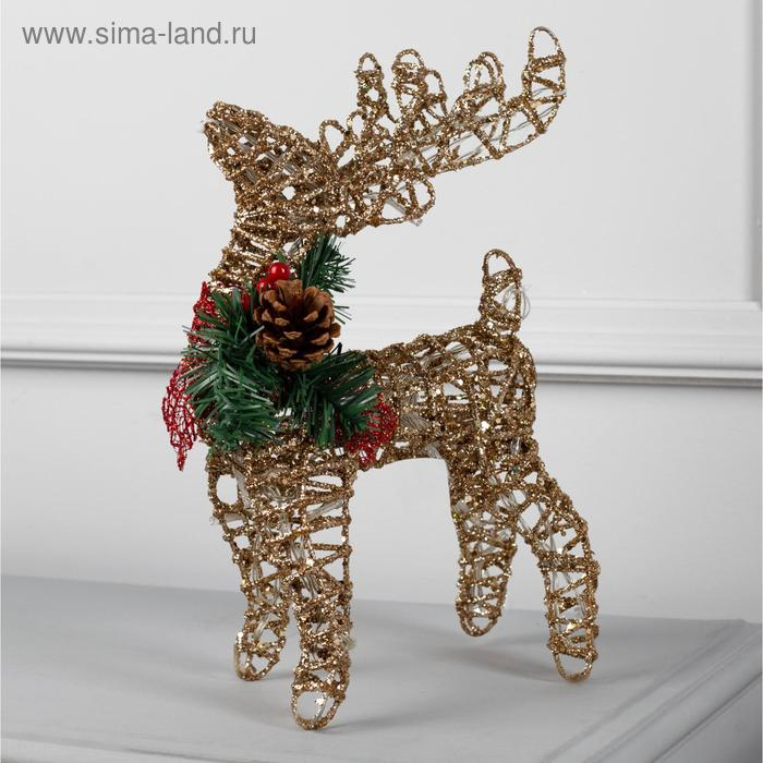 Светодиодная фигура «Олень золотистый» 25 × 30 × 10 см, металл, батарейки ААх3 (не в комплекте), свечение тёплое белое