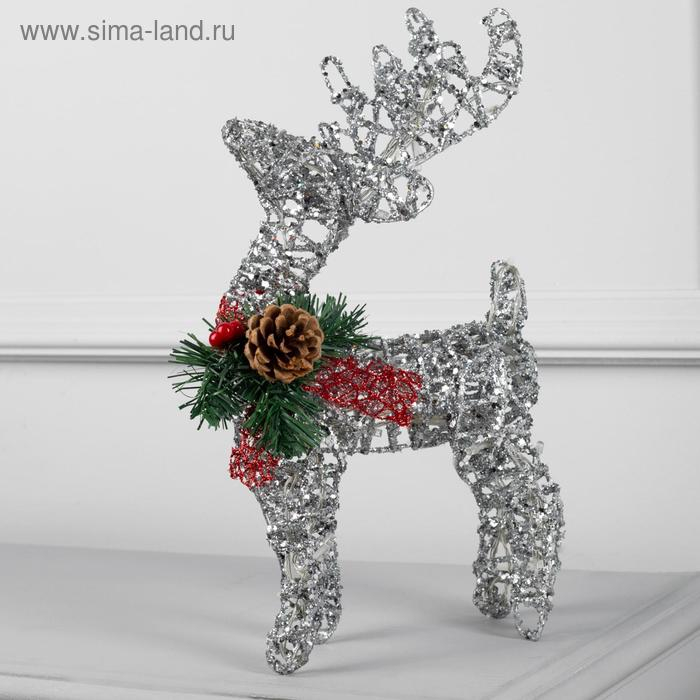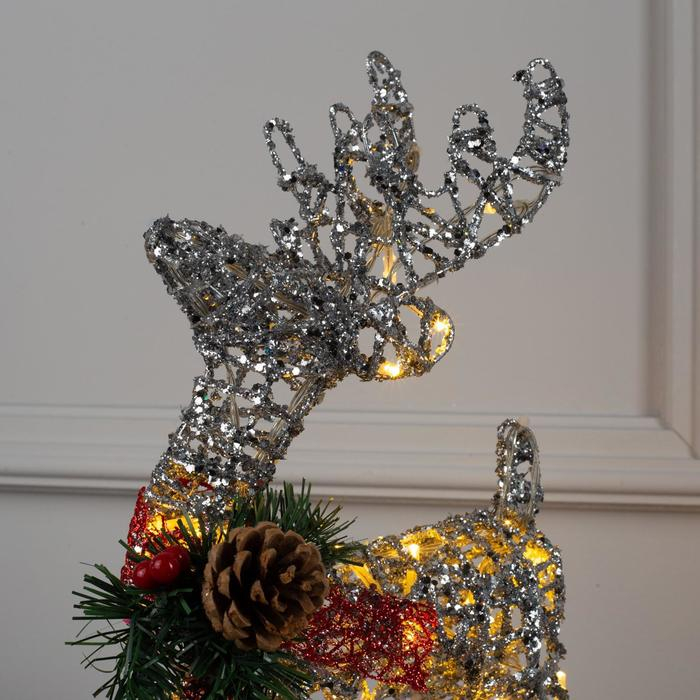 Светодиодная фигура «Олень серебристый» 25 × 30 × 10 см, металл, батарейки ААх3 (не в комплекте), свечение тёплое белое
