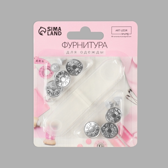 Набор джинсовых пуговиц, 17 мм, 6 шт, с установщиком, цвет серебряный