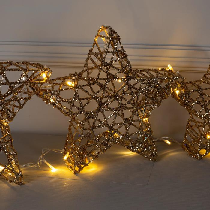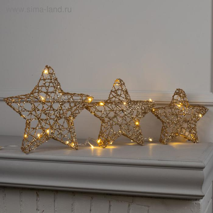 Светодиодная фигура «Звёзды золотистые» 20, 25, 30 см, металл, 220 В, свечение тёплое белое