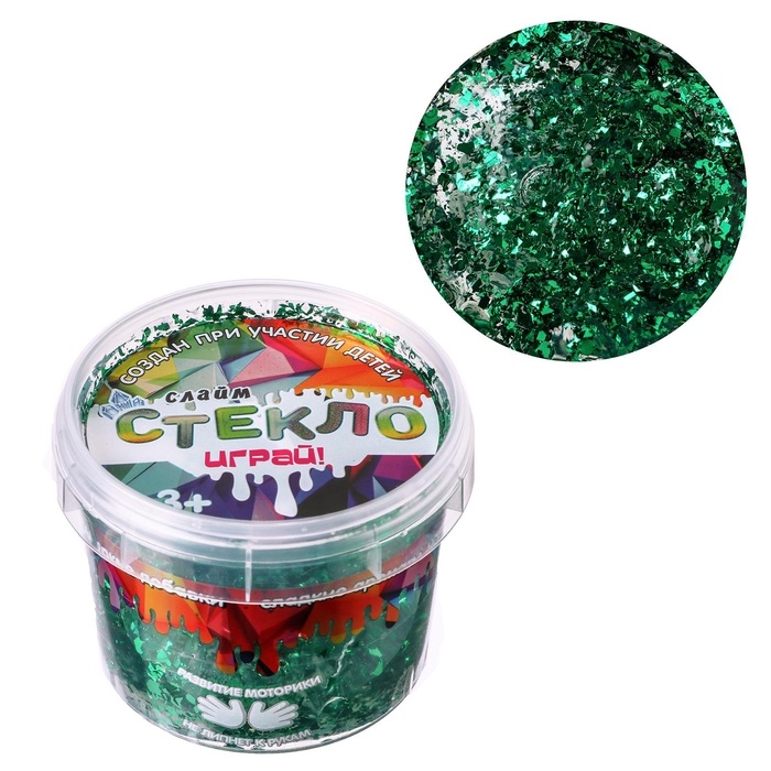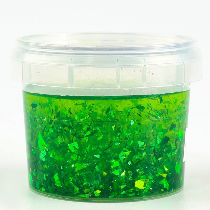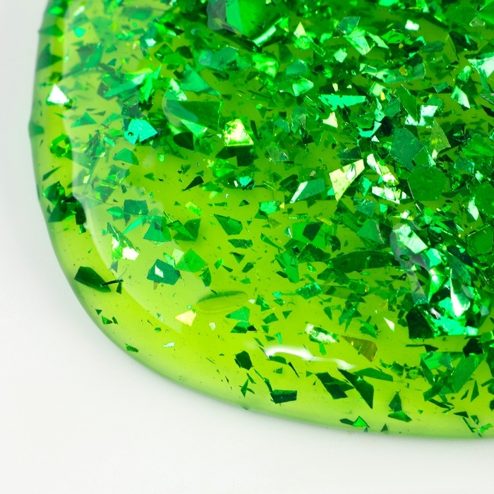 Слайм «Стекло» с зелёными блёстками слюда
