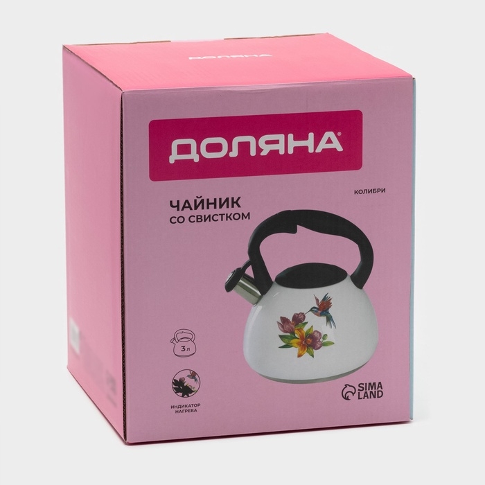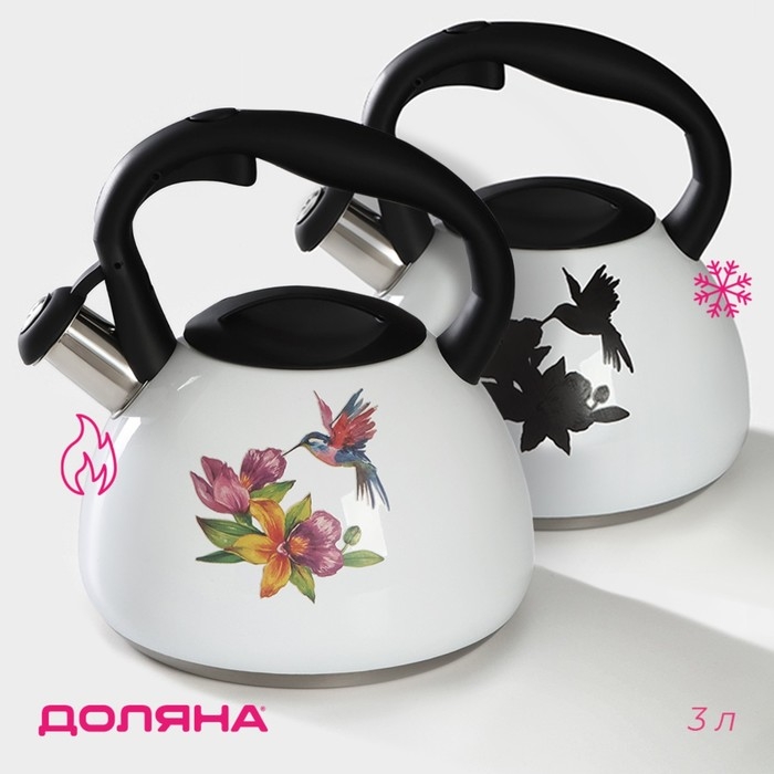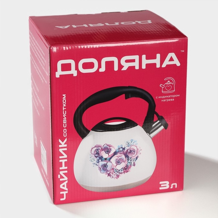 Чайник со свистком из нержавеющей стали Доляна «Колибри», 3 л, с индикатором нагрева