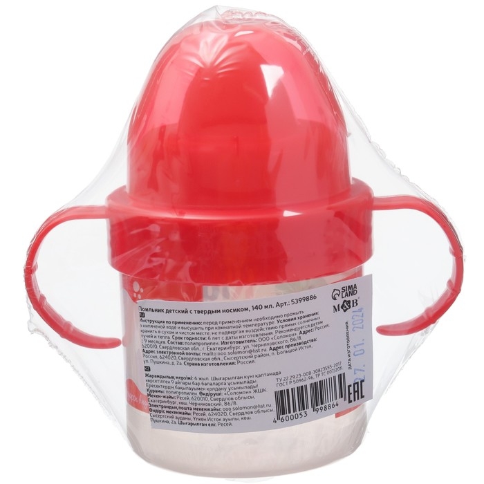 Качество товара подтверждается сертификатом соответствия ЕАС. Поильник выполнен из безопасного пластика, предназначенного для производства детской посуды.