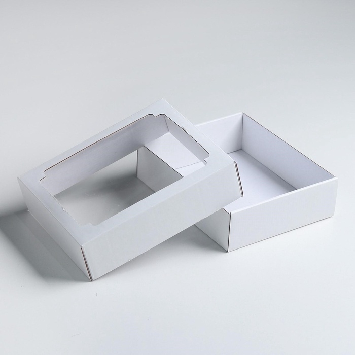 Коробка сборная без печати крышка-дно белая с окном 18 х 15 х 5 см, набор 5 шт.