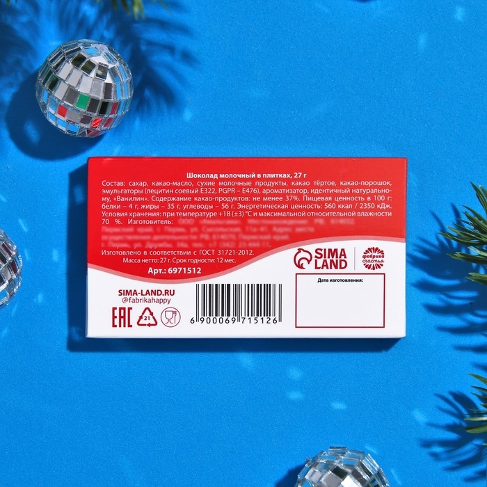 Адвент календарь «Новый год уже на пороге»: с молочным шоколадом, 5 г х 15 шт.