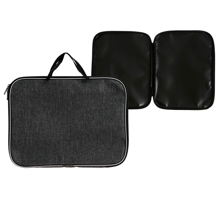Папка с ручками текстильная А4, Calligrata "Офис", для бумаг, для офиса, нейлон 600D, лён, серая, ПМ/1, 350 х 270 х 20 мм