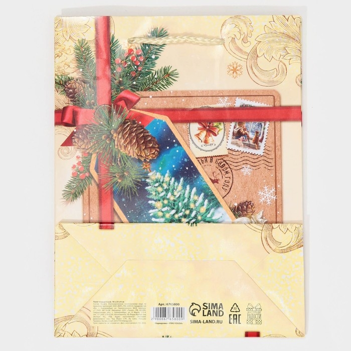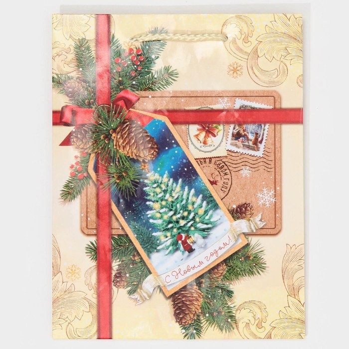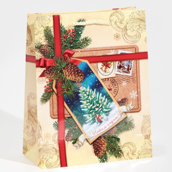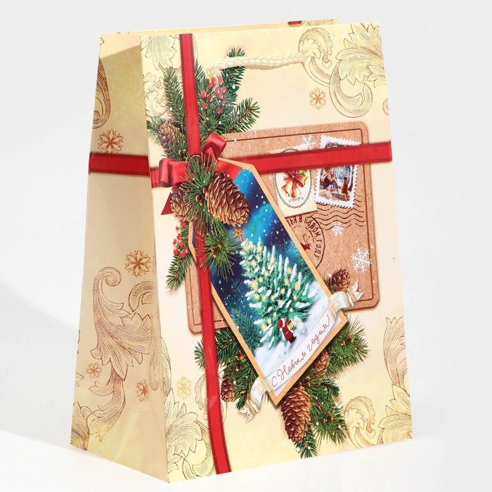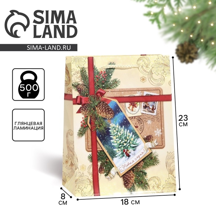 Пакет подарочный новогодний ламинированный «С Новым годом!», MS 18 х 23 х 8 см