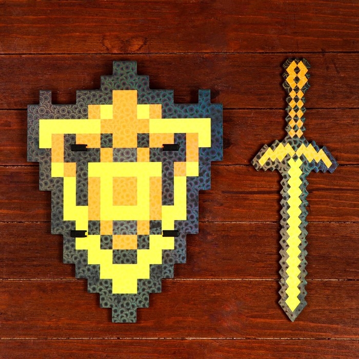 Набор деревянных сувениров "Золотое оружие" щит, меч