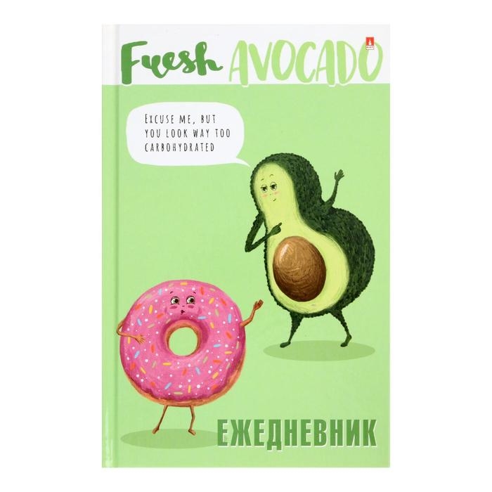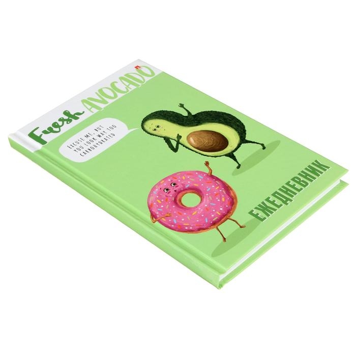 Ежедневник недатированный А5, 128 листов в клетку "Авокадо и пончик", твёрдая обложка, глянцевая ламинация, блок 55 г/м2