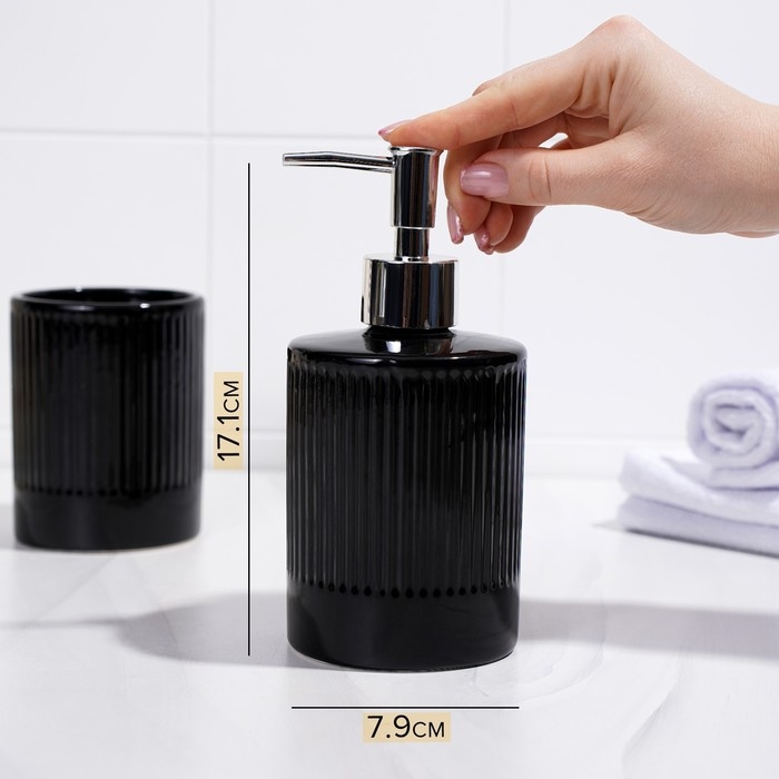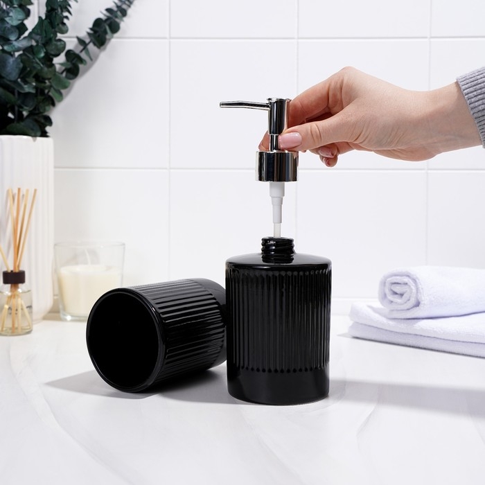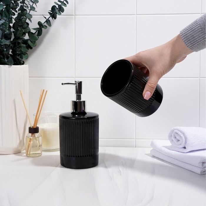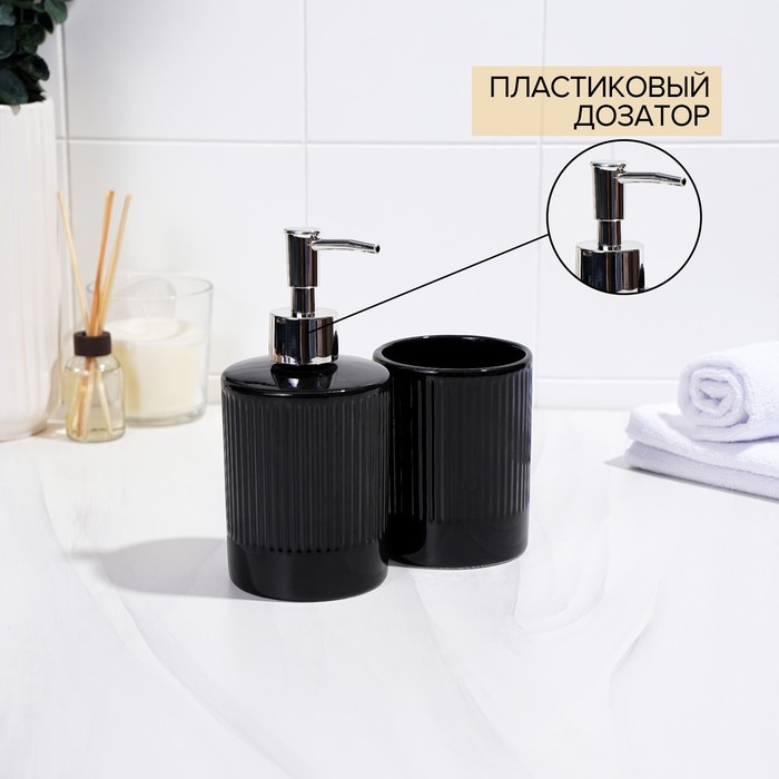 Аксессуары для ванной «Лина», 2 предмета: дозатор для мыла, стакан, чёрные