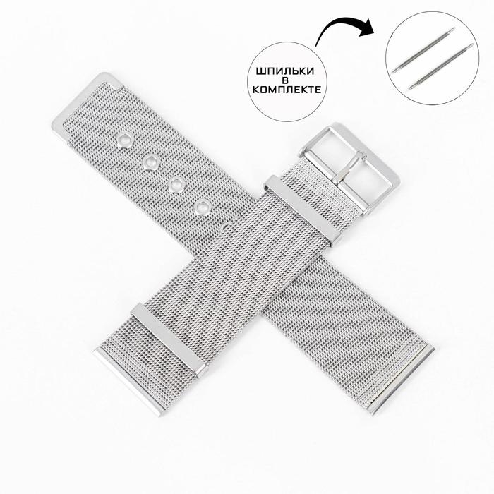 Ремешок для часов "Соломон", 24 мм, нержавеющая сталь, l-20.5 см, серебристый