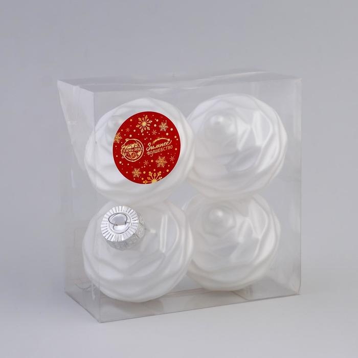Ёлочные игрушки "Глория луковки волны" (набор 4 шт) 7х7 см, белый