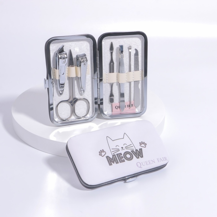 Набор маникюрный «Meow», 7 предметов, цвет белый