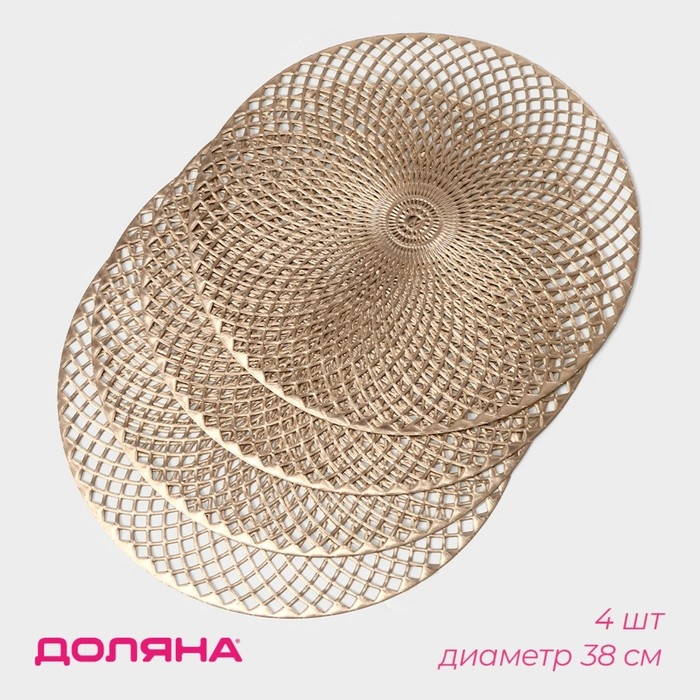 Набор салфеток сервировочных на стол Доляна «Вира», 4 шт, d=38 см, цвет золотой
