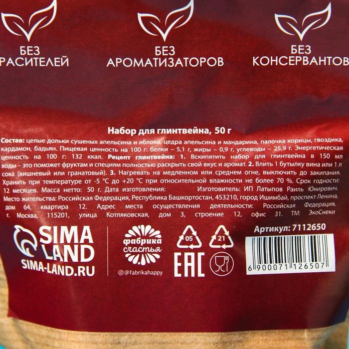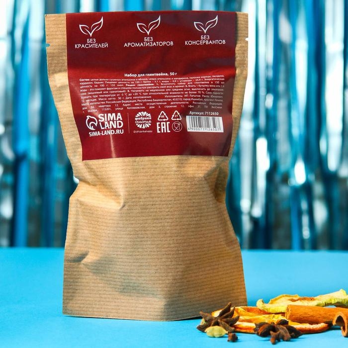 Состав: целые дольки сушеных апельсина и яблока, цедра апельсина и мандарина, палочка корицы, гвоздика, кардамон, бадьян.