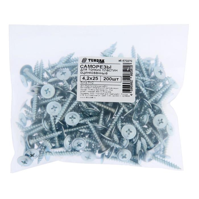 Саморезы "ТУНДРА krep", с прессшайбой, остроконечные, 4.2x25 мм, оцинкованные, 200 шт