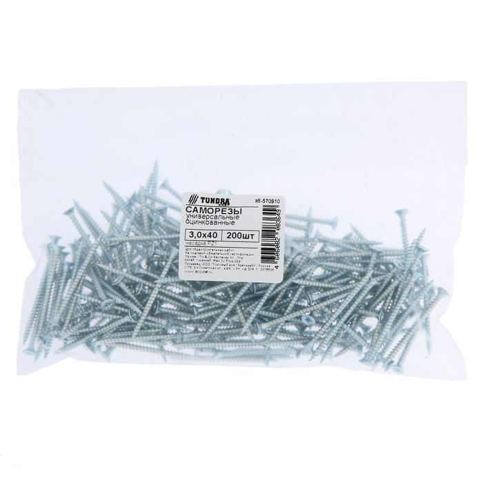 Саморезы универсальные ТУНДРА krep 3.0x40 мм, цинк, 200 шт.
