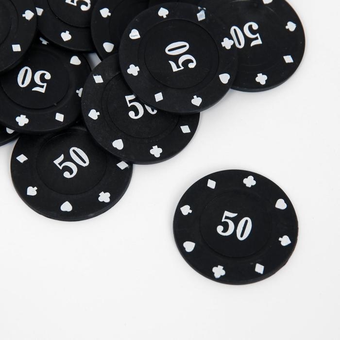 Набор фишек с номиналом 50, однотонные, черные, в наборе 25 шт.
