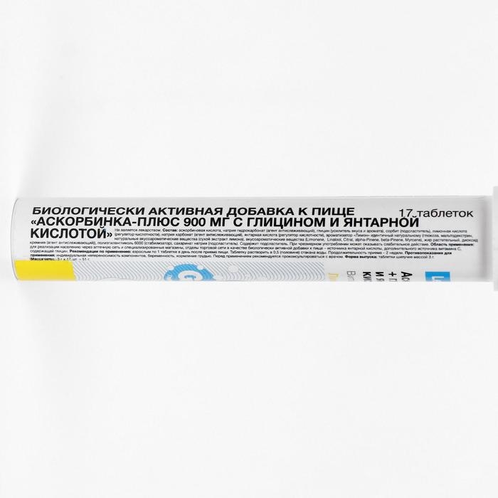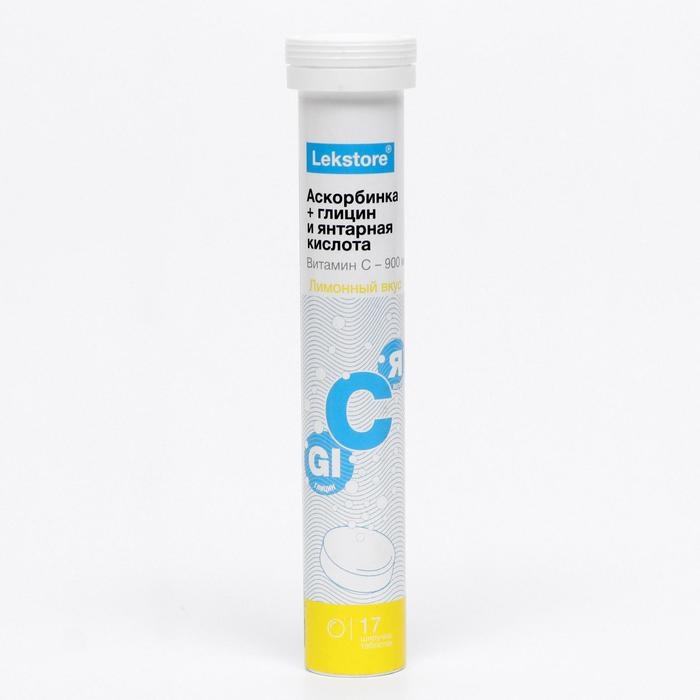 Аскорбиновая кислота «Лекстор» 900 мг+ глицин и янтарная кислота, лимонный вкус, 17 шипучих таблеток по 3 г